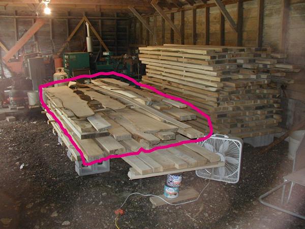 The boards within the pink circle are those last 21 boards plus the few thinner boards that we saved.