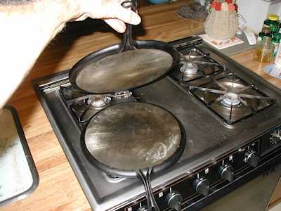 After another look-see, he loosens the "crepe" again and turns it over to complete the cooking. Note that he turns the "crepe"